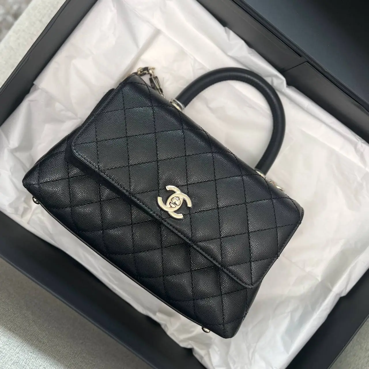 Chanel Small Coco Handle bag Black Caviar leather Vintage United Very well made.