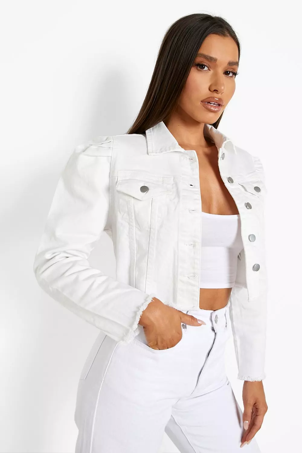 Puff Sleeve Cropped Denim Jacket Very well made.