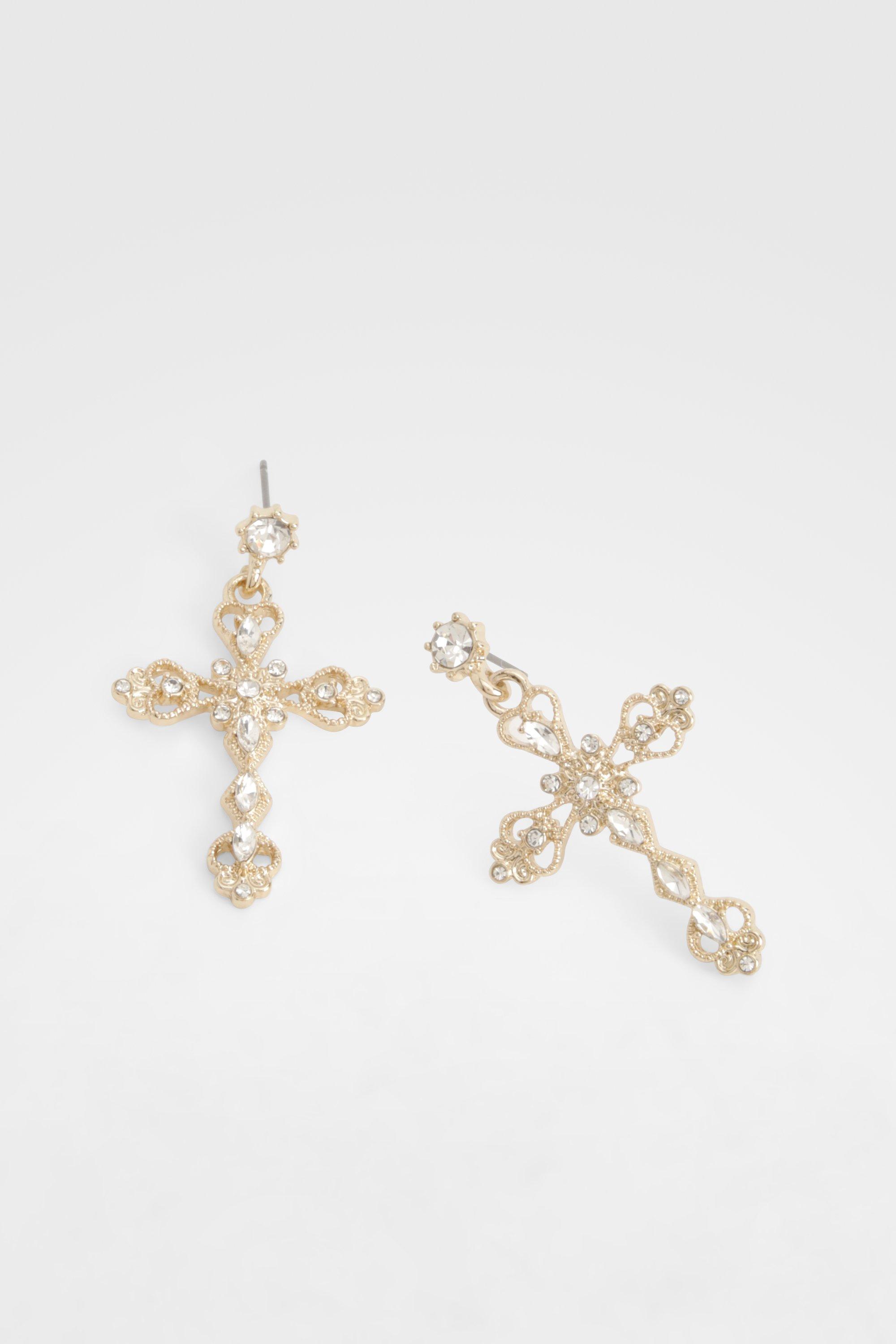 Oversized Diamante Cross Earrings boohoo NZ Very well made.
