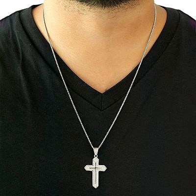 Men s Sterling Silver 1 2 Carat T.W. Diamond Cross Pendant Necklace Size 22 Very well made.