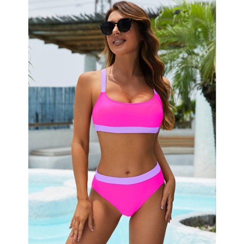 Women s High Waisted Bikini Sets Sporty Two Piece Swimsuits Color Block Cheeky High Cut Bathing Suits Target Very well made.