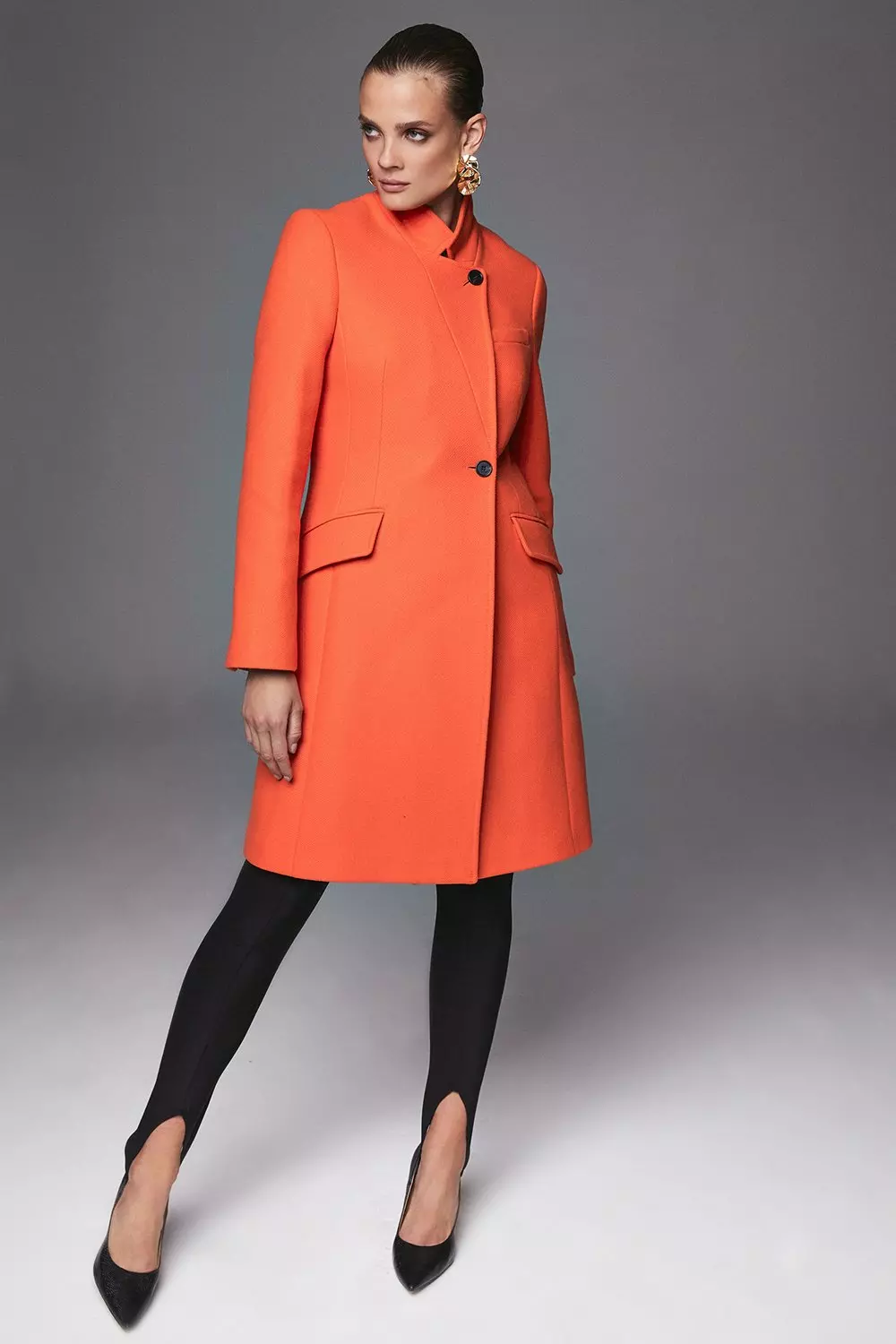 KAREN MILLEN Boucle Pocket Detail Textured Collared Coat in Orange endource Very well made.