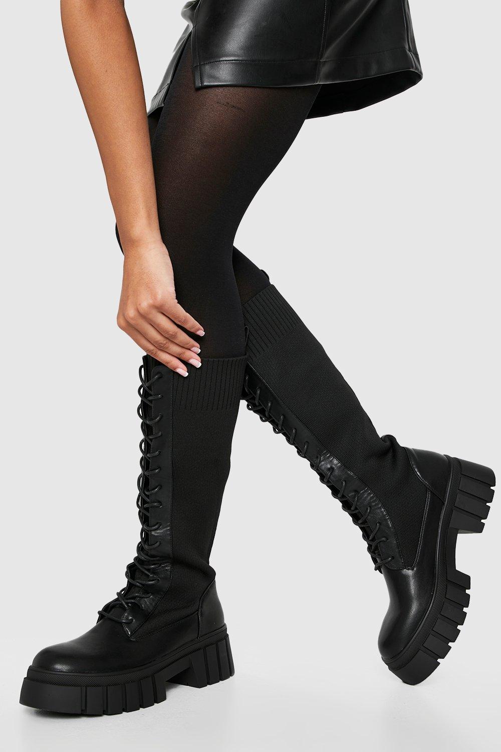 Lace Up Knee High Combat Boots boohoo CA Very well made.