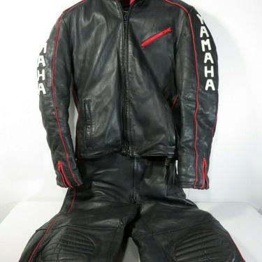 Vtg YAMAHA LEATHER JACKET BIBS Pants MOTORCYCLE SNOWMOBILE RACING Dirt Urban Rummage Seattle WA Very well made.