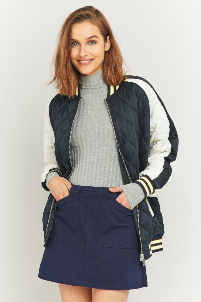 Light Before Dark Navy Quilted Baseball Bomber Jacket Very well made.
