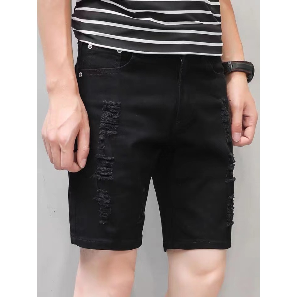 Men s Casual and Daily Outfit Tattered Ripped Black Denim Shorts 7597 Shopee Philippines Very well made.