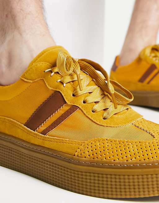 ASOS DESIGN chunky retro sneakers in mustard faux suede with gum sole Very well made.