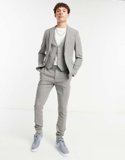 ASOS DESIGN wedding super skinny suit jacket in gray wool blend micro houndstooth Very well made.