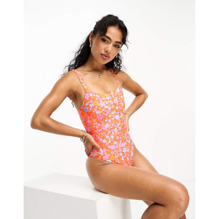 Kulani Kinis x Hannah Meloche Ava Jules Adjustable Strap Swimsuit in Orange Ditsy Floral Print Very well made.