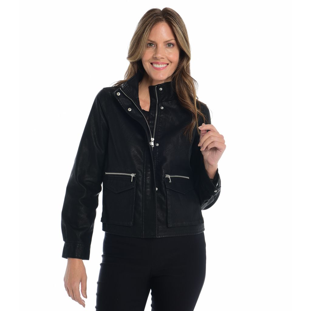 Baccini Faux Leather Patch Pocket Zipper Detailed Jacket Very well made.