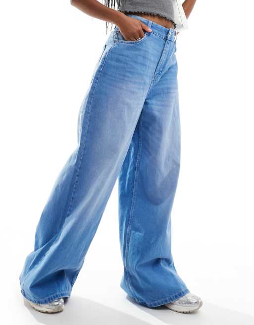 Bershka super wide leg jeans in washed light blue Very well made.