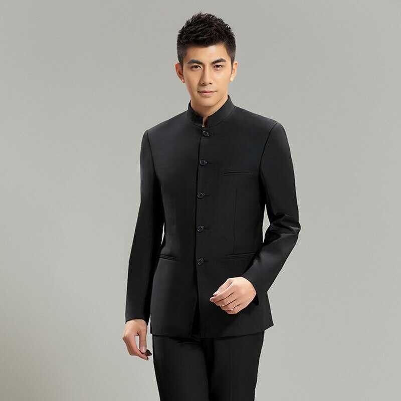 Black Solid Chinese Mao Stand Mandarin Collar Men Blazer Trousers Set Pant Terno Mascuo Fit Tux Shopee Philippines Very well made.