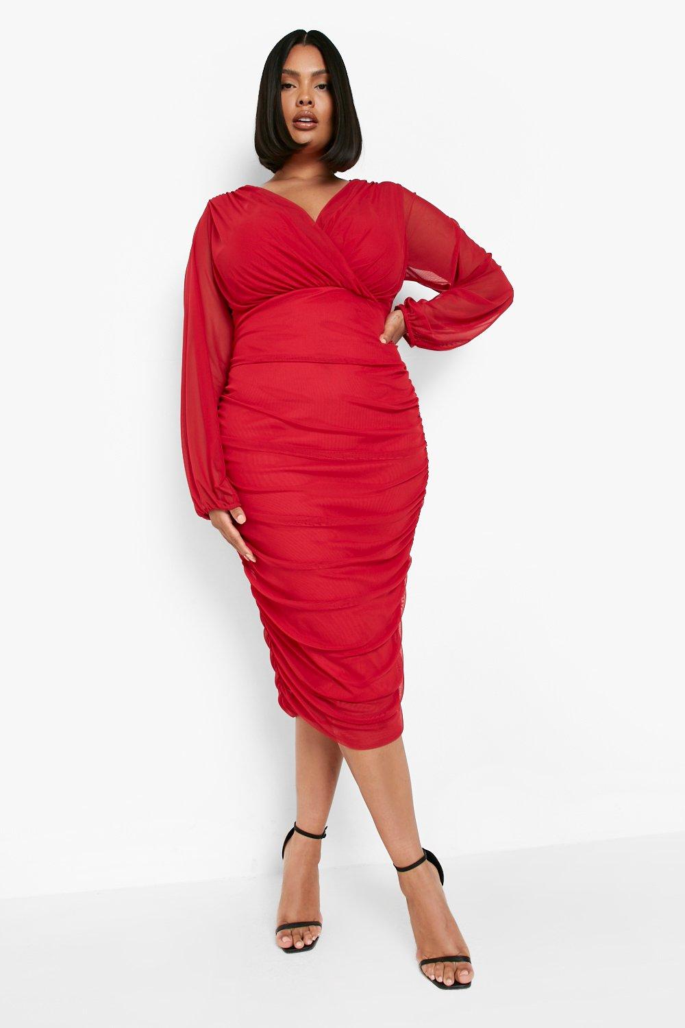 Plus Mesh Wrap Ruched Midi Dress boohoo UK Very well made.